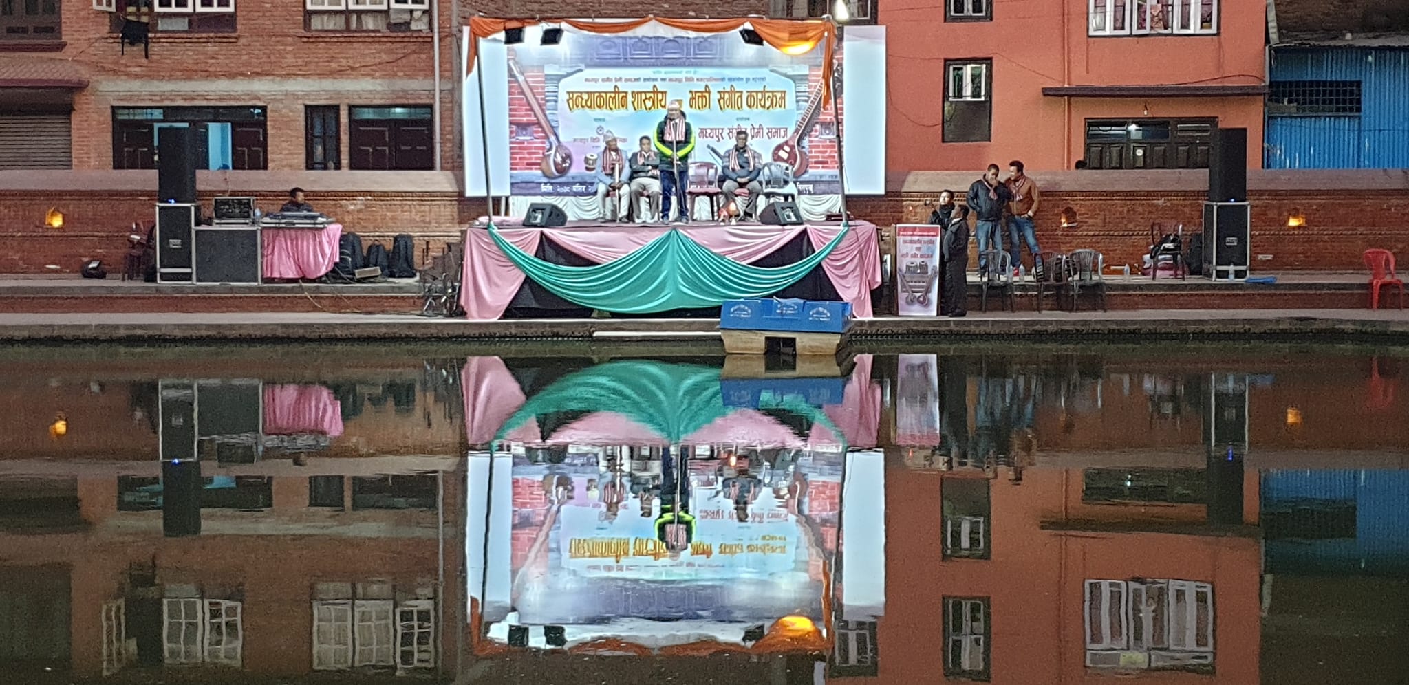 पोखरीको पूर्वपट्टिको आली अर्थात् डिलमा बनेका मञ्चमा तबला, हारमुनियम, तानपुरा, इशराज, पखवाजलगायतका बाजा गुञ्जिरहेको थियो । चम्किएको बत्तीले दुई पोखरीभित्र मध्यपुरथिमिमै पहिलोपटक आयोजना गरिएको खुला सन्ध्याकालीन शास्त्रीय तथा भक्ति सङ्गीत कार्यक्रमले लाग्थ्यो सिङ्गो मध्यपुरथिमि गुञ्जयमान बनिरहेको छ ।