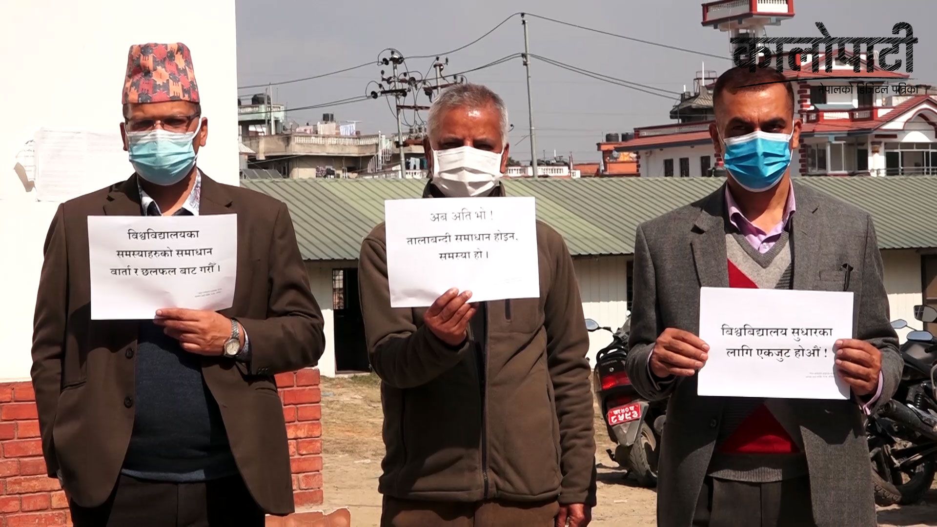 विश्वविद्यालयलाई तालाबन्दी मुक्त क्षेत्र बनाउँ, अब त अत्ति भयो, विश्वविद्यालयमा तालाबन्दी कहिलेसम्म, विश्वविद्यालय सुधारका लागि एकजुछ होऔँ लगायतका प्लेकार्ड बोकेर बिरोध प्रदर्शन गरेका थिए । उनीहरुले विश्वविद्यालयको रजिस्टार कार्यालयअघि १५ मिनेट शान्तिपूर्ण धर्ना दिएका थिए । प्रदर्शनकारी प्राध्यापकहरुले समस्या सहज रुपमा समाधान गर्न सकिने अवस्था रहेपनि आन्तरिक उद्देश्यले बन्द गर्दा पठनपाठनमा समस्या भएको बताएका छन् ।