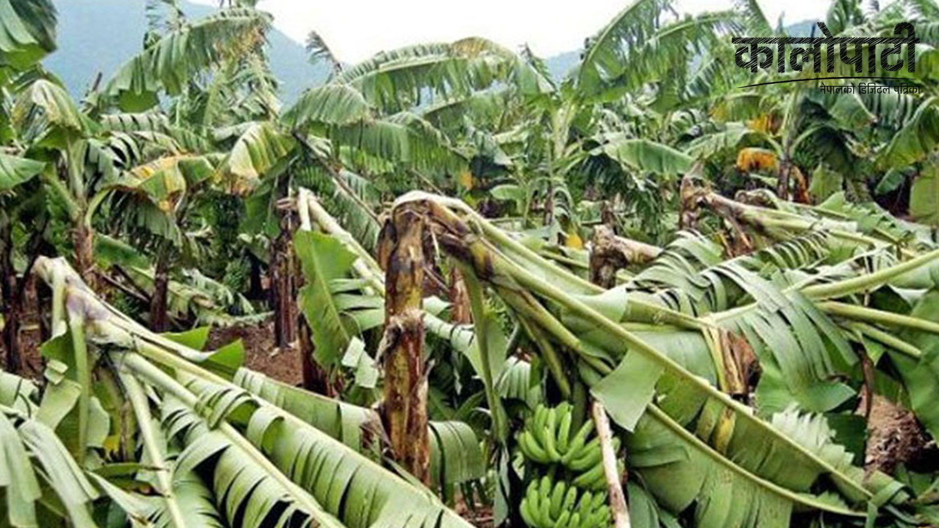 हावाहुरीले केरा खेतीमा क्षति, सबै ढालेपछी किसान चिन्तित