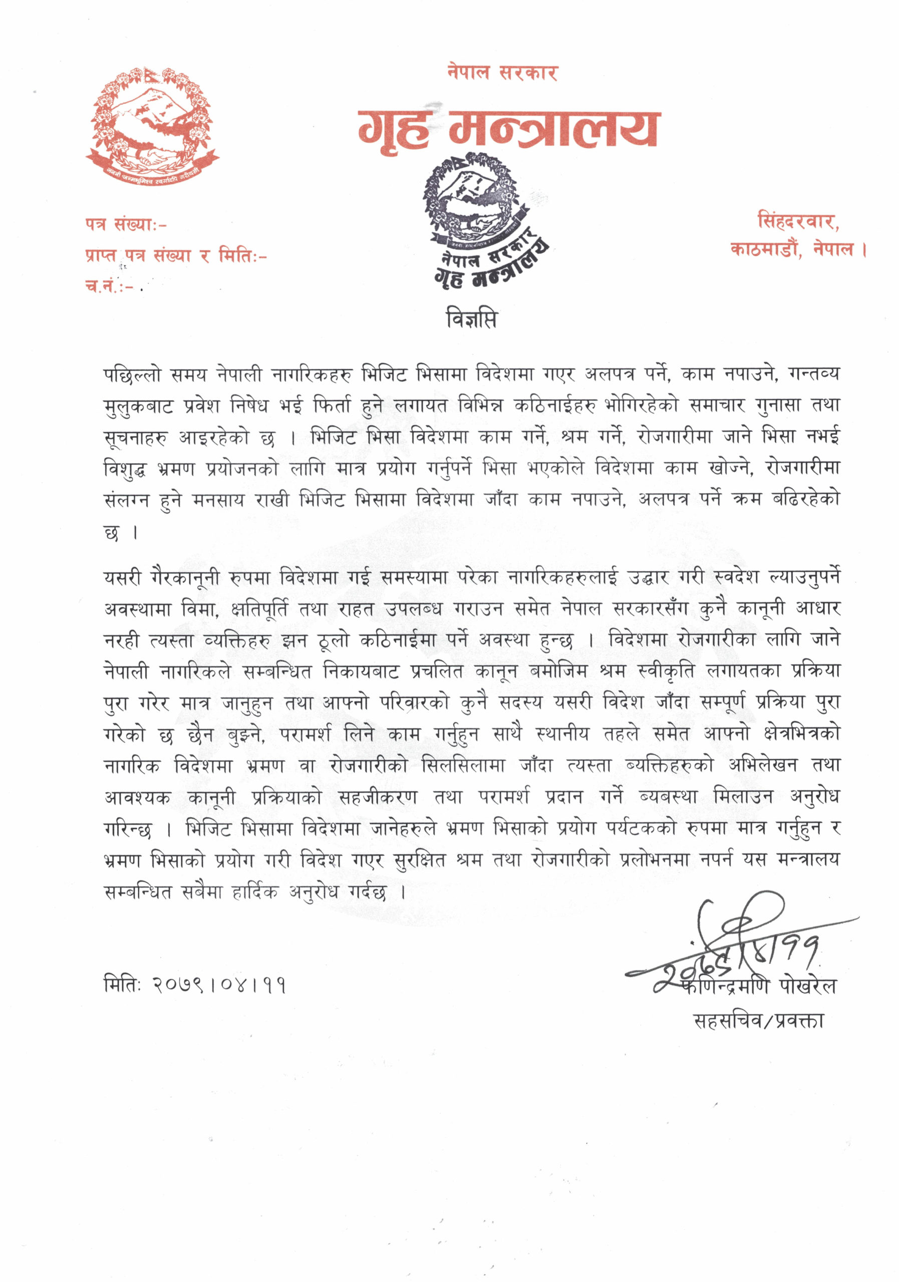हेर्नुहोस् गृह मन्त्रालयको विज्ञप्ति..